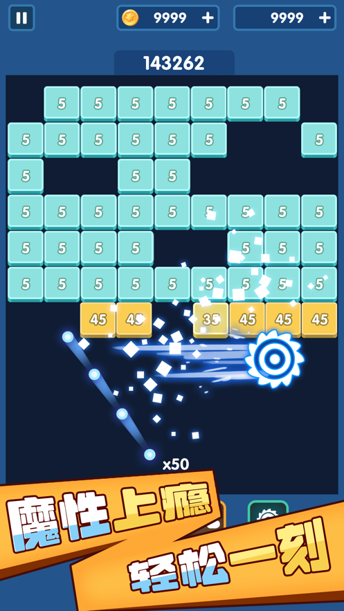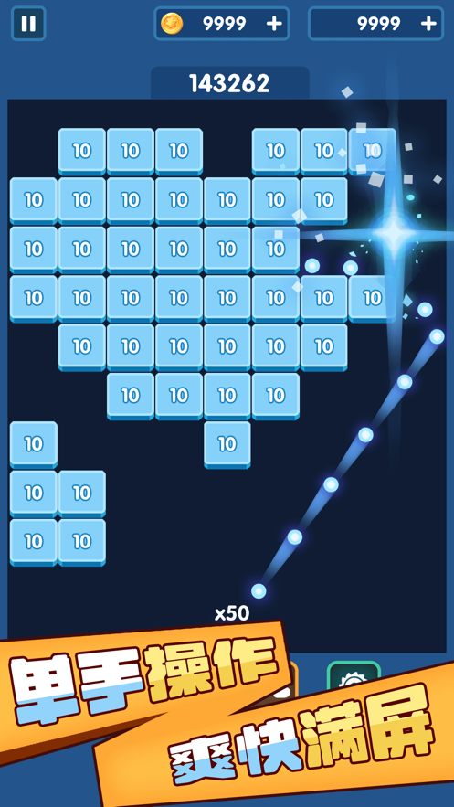 砖块爆爆爆ios是一款休闲游戏,如果你玩过打砖块的话,这款游戏会非常的适合你,通过反射小球,击碎上面的方块,每一块的方块数值都不同,击中分数越大的方块,最后结算的积分也会越多哦!