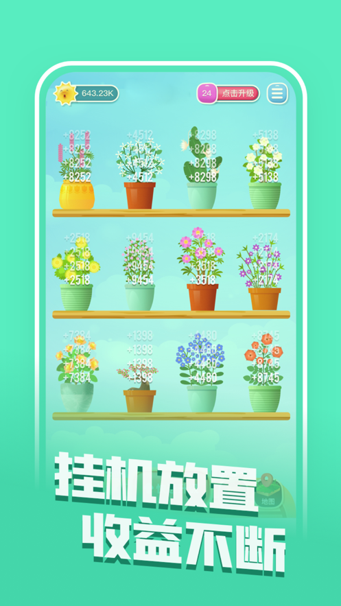 1、休闲种花小游戏,在自己的小花园中,按各自的喜好培养自己喜欢的花朵。随着等级提升,花的形态变化也会获得升级。解锁更多好看的花朵,创建自己的阳光花园。