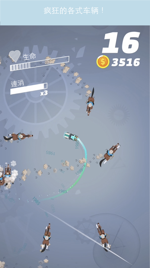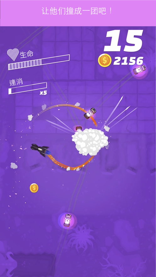 4、点击以左右转向,让敌人相互撞击,提高连击数,获得更多分数!