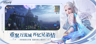 多种族职业齐聚熟悉之地,依然是悬崖边上巍峨的主城,端游经典主城万流城回归,你依然可以在崖边远眺余晖。