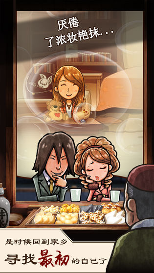 《关东煮店人情故事》省去了繁琐复杂的操作,只需点击客人头上的泡泡就可以继续剧情。