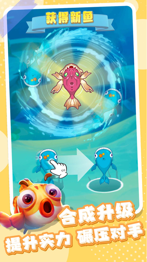 2、挪动你的手指,把相同的小鱼合成起来,发现更多未知的沙雕鱼种。