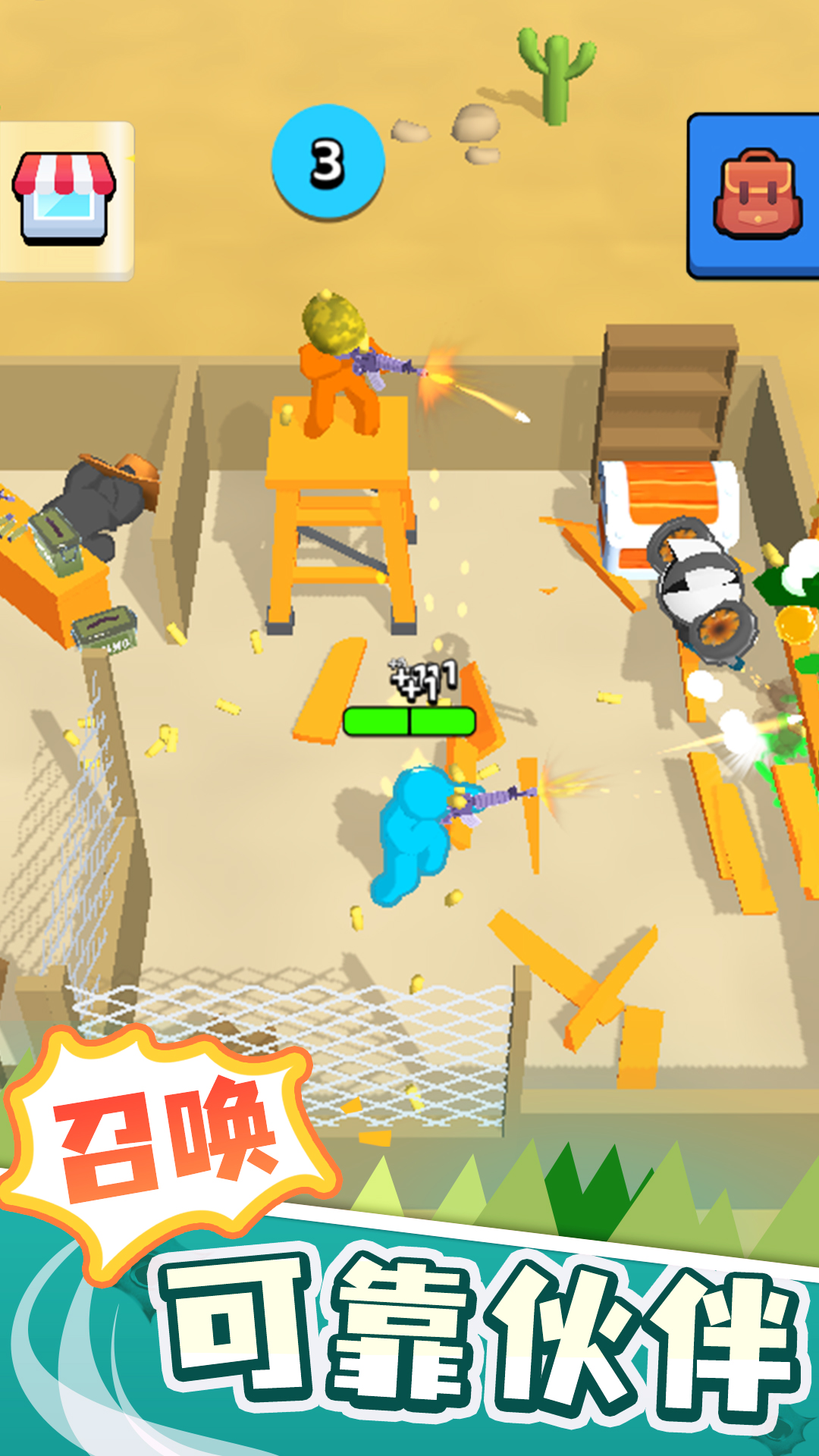 末世日记,抖音爆款动作闯关游戏。游戏中玩家将操控你的小蓝人集结你的队友,收集枪支武器,疯狂射击来袭的小绿人,不断射击闯关,清扫整个战场吧。