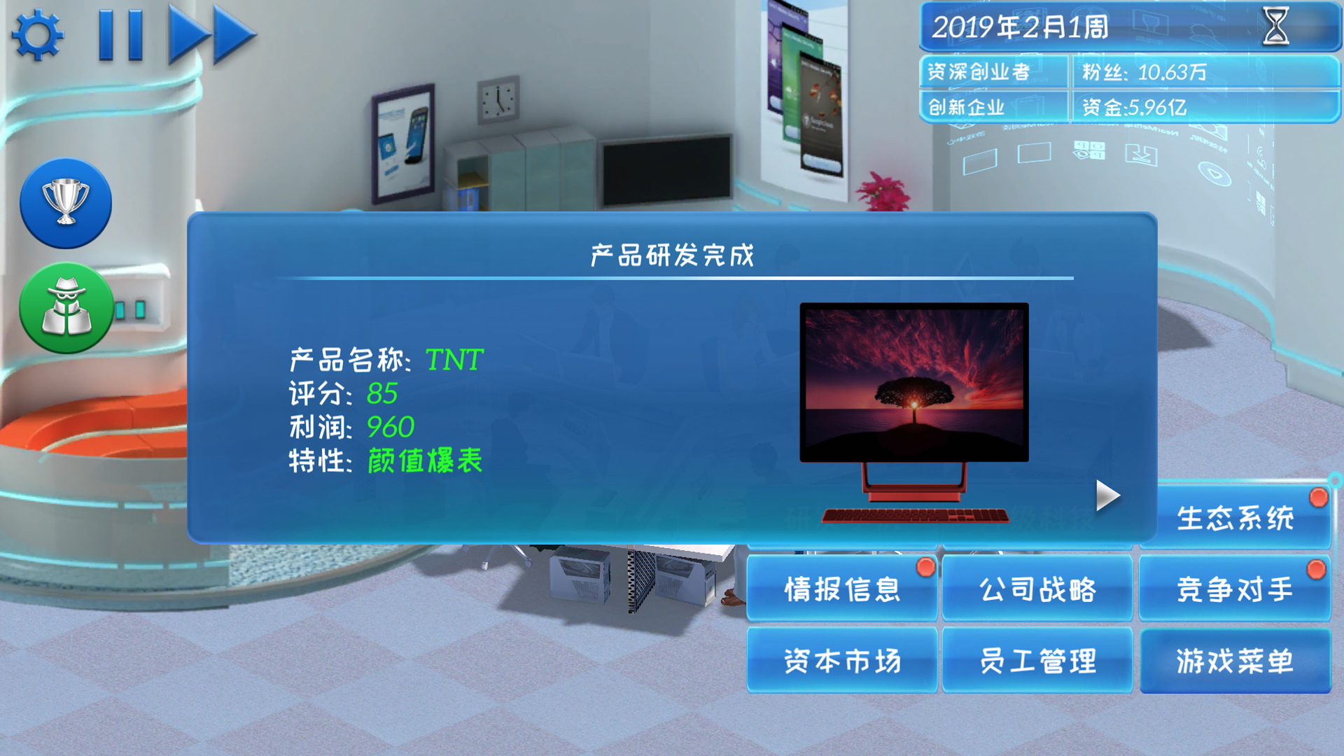 在你的公司上市之后,将可解锁强大的“生态系统”功能。你将可以在全球范围内开设体验店,可以研发智能电视、无人机、机器人等新型智能硬件,可以在软件商店中向你的用户推荐各种畅销游戏。
