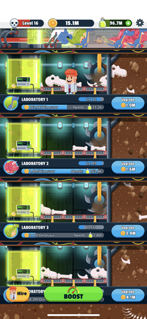 2、升级你的生产机械,它的等级提高了,恐龙的生产效率才会提高,想要的收益也会增加。