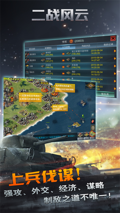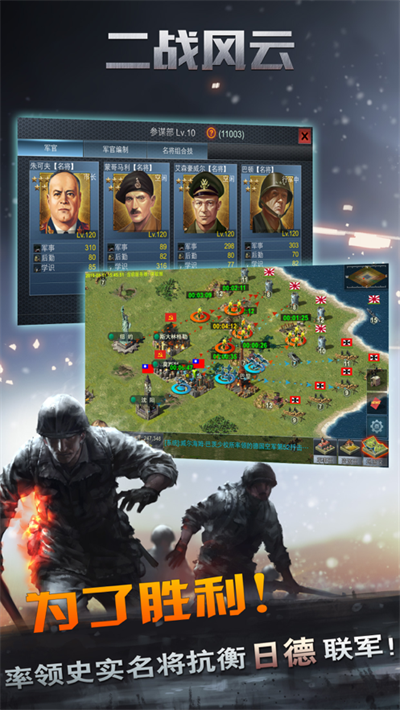 9、《二战风云》是一款社交战略网游!游戏以二次大战为背景,结合城市建造、资源经营、组建军队、军团养成等一系列玩法,供您尽情施展策略、比拼智谋,最终打 造一个属于您自己的地盘!更有个人免费加速及军团帮助功能助您快速发展。城内指挥作战、城外立决胜负,不同玩法一样激情!