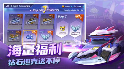 3、除此之外,游戏还具有大量的福利。通过开服任务和后续的活动,即可获取大量用于培养坦克的资源,不断养成提升坦克的能力,解锁更强的坦克!