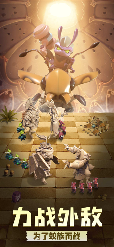 4、《蚁族崛起:神树之战》讲述了人类庭院中,受神树祝福的蚂蚁觉醒了属于自己的文明,并形成了各自的阵营势力,为了争夺神树所孕育的生命之果,进行着无尽的激烈战斗的故事。玩家作为一个族群的统帅,通过招募英雄,建筑蚁巢来壮大自己的实力,以此守护族群,开疆拓土,成为庭院的霸主!