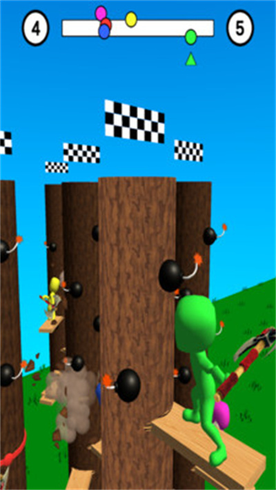 1、游戏中有着多种不同的斧子可供玩家选用,需要快速的将关卡一根根木条拼接而成的木板切割开。