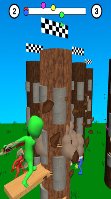 2、完成游戏中的一些关卡挑战任务,逐渐的可以去解锁更多不同种类的斧子,让你更加轻松砍树。