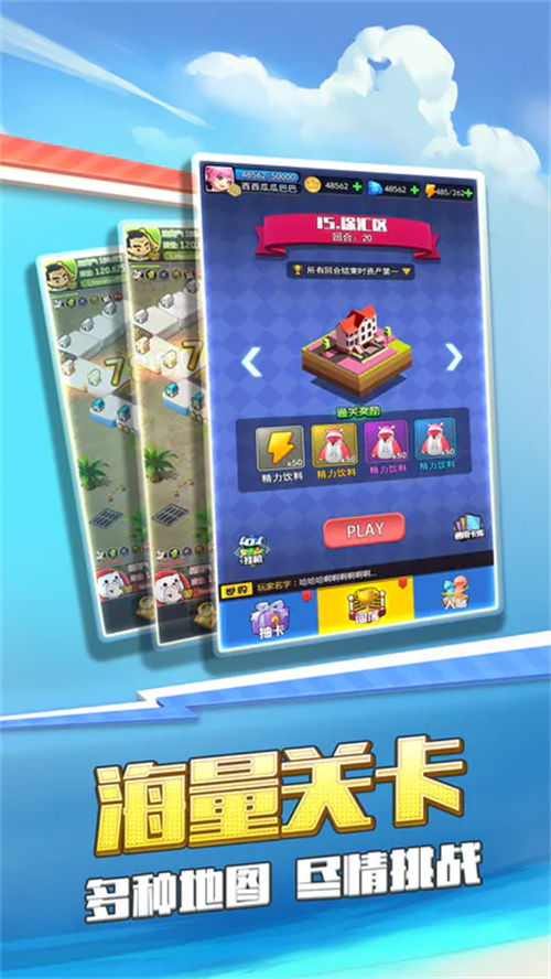 经典的大富翁玩法,美少女和道具的百般组合,还可以挂机养成,不肝不氪,邀请好友一起游戏,工作之余一起来一局,缓解一天的压力。