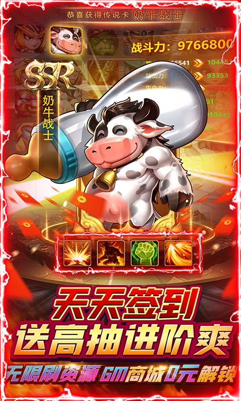 1、5星好评送剑圣,不要吝啬你的支持,用好评砸死策划吧 2、开局即送VIP10特权、钻石88888和无限连抽宝箱 3、上万真充升级免费拿,每日签到疯狂送真充,天数越多送礼越大 4、主线推图关关领真充盲盒,零氪也能天天刷真充 5、7天签到天天送高抽,上百高抽登录即送;登录第7天再送5星英雄【嗜血剑圣】,受伤反击推图快到飞起 6、GM商城0元解锁,每日刷抽刷金币刷养成,前期资源不用愁 7、每日完成活跃任务送十连高抽,简单好做的日常千万不能漏掉