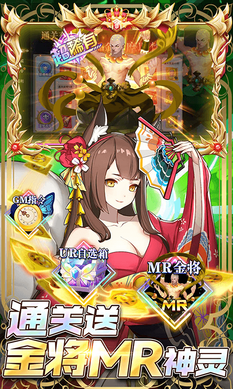 ★上线GM1、60w钻石、3888w金币、1000元充值卡 ★首日登录即送UR,轻松搭配合击阵容 ★送200抽活动,除送连抽之外,还送2个UR任选箱 ★任选UR、稀有UR活动让你获得海量养成材料,UR轻松满星不是梦 ★升级闯关送金将 ★挂机也能得充值卡 ★点充系统海量充值卡等你来拿 ★神灵馈赠活动每日免费任选豪华奖励 ★每日签到送盲盒,海量珍惜道具、充值等你拿 ★海量活动真充卡激活,0氪也能获得海量资源 ★充值比例1:3000