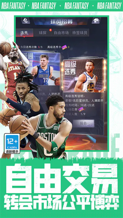 真实还原NBA真实球员数据,上百种球员等你来挑,自由搭配阵容,更有神秘玩法,招募巨星运筹帷幄,成为实力经理人。
