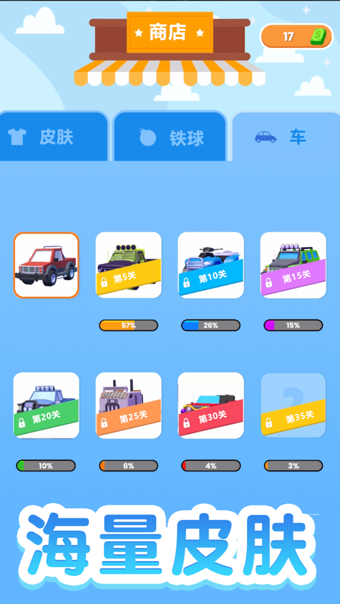 5、游戏中准备了破坏球、极速跑、激光枪、龙卷风、汽车等千奇百怪的道具供玩家驱使,让玩家可以通过破坏周围环境,击退追捕者达成关卡目标。