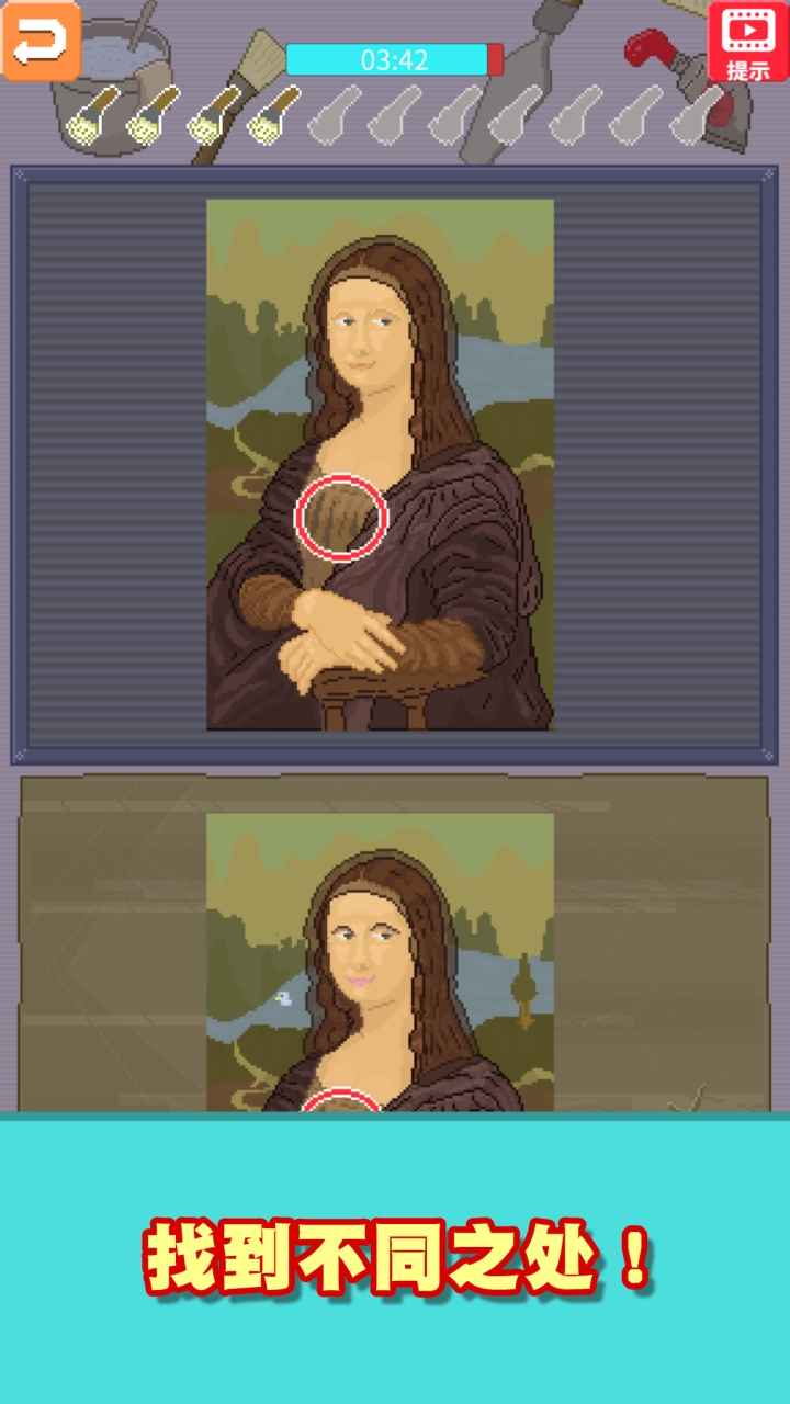 ・对比上下的美术品,点击不同之处进行修复。