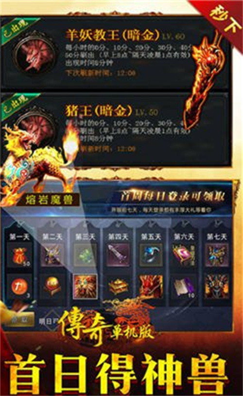 升级打怪,自由无限制!超高的离线经验,让您不再担心一天不玩的掉队!