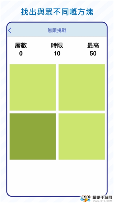 玩法好简单,透过喺相同颜色方块里,找出与别不同嘅一块。