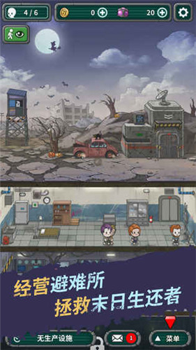 活着回归、收集物资、营救更多的幸存者并持续经营建设你的多层地下避难所!
