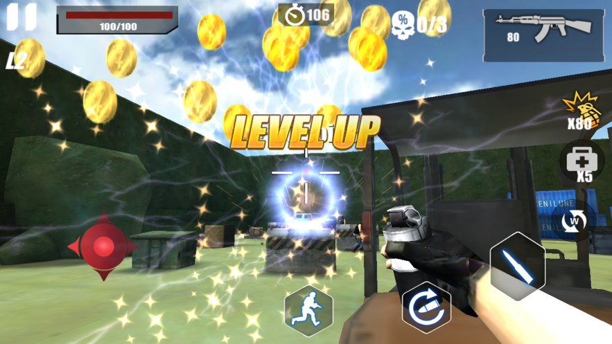 7、*极真实的游戏场景,加上真实的游戏音效,瞬间将你带入热血的枪战之中,全面开战吧!
