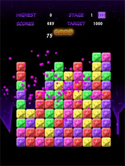 消除之星这款游戏凭借极易上手的操作和对高分的热枕追求让此类游戏使众多玩家难以自拔。Popstar的出现为略显乏味的消除游戏再添治愈元素,当疲劳一天的你看到满天的小星星飞来飞去,顿时疲惫感全失,乐此不疲的把小星星全部消除。