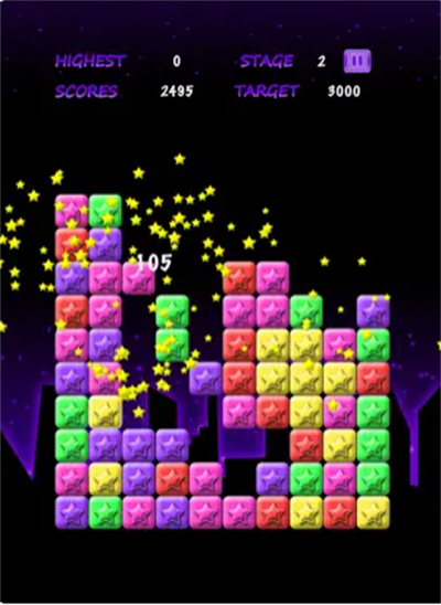 消除之星ios版是运行在苹果手机平台上的一款非常简单的消除类游戏,该游戏拥有色彩艳丽的精美画面和节奏轻快的的背景音乐,加上消除得分时的炫丽喜感画面,不得不让手机一族上瘾。消除之星类似游戏都有各自的特色,此版本新加入特殊百搭星星,玩法非常简单,玩家只需要点击两个或两个以上颜色相同的方块即可消除,没有时间限制,完成每个阶段的目标进入下一关就可以。