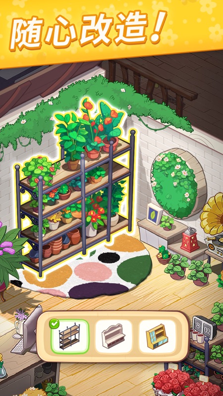 通关关卡获得装饰道具,在各种不同风格的装饰品中自由搭配。个性化的店内布置,每个人都可搭配出自己的专属空间