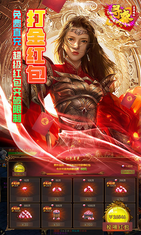 1.上线送一亿元宝,一刀100级!神将免费送,上线直接升满,刀刀麻痹 2.内置高级辅助挂机,上线热血争霸,下线自动打金! 3.小怪无限掉红包,红包直接就能充钻石,散人白嫖首选,十元当爹,百元当爷这么好的服就差你了! 4.寻秦原班人马呕心沥血制作,魂环、魂骨、福利、玩法再升级! 5.至尊宝阁10钻就买稀有道具,不爽我叫你爸爸! 6.上千件装备,上百张地图,精心制作一年 7.完美数值,没有一刀秒,上线直接开撸,无任务! 8.30余种特殊属性,次元瞬闪,擒龙控鹤,万剑归宗,全部都有! 9.所有装备,所有特殊以及材料游戏内全部能爆,散人打金好去处!