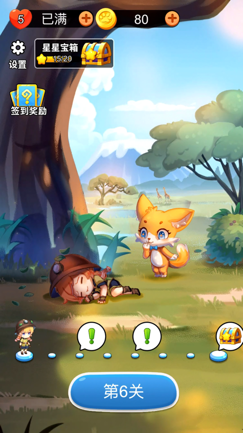 5、消除过关,不断探索这个穿越的异界!一边和动物朋友们相遇,一边躲避捕食者的威胁!