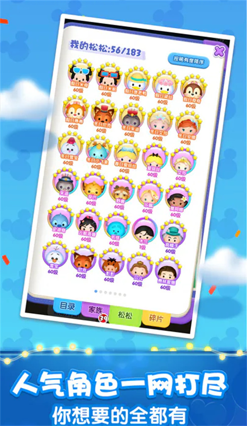 迪士尼正版授权,治愈系收集手游《松松总动员》来袭!来跟随松松们一起,畅游迪士尼的奇幻世界吧。