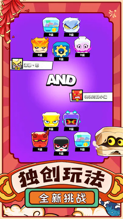 超过60种块块,攻击,辅助,控制,亡语技能任意组合,打造专属你的最强阵容!