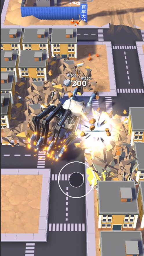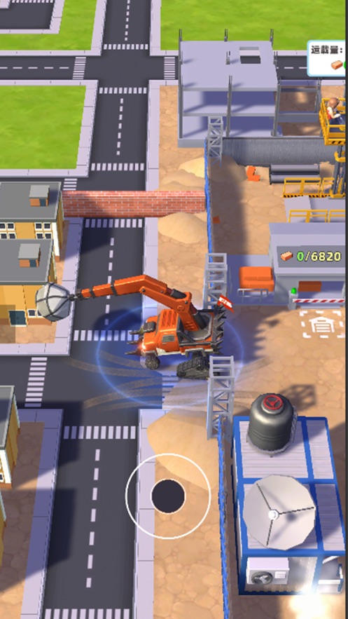 5、简单操作:拖动摇杆移动挖掘机,靠近违建即可开始拆楼