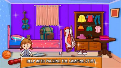 收集和打包夏令营假期旅行所需的所有东西,给女孩和男孩穿衣服;