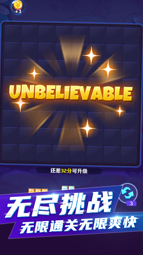 7、酷炫的特效带来视觉享受,轻松滑动各种方块,进行奇妙的搭配组合;