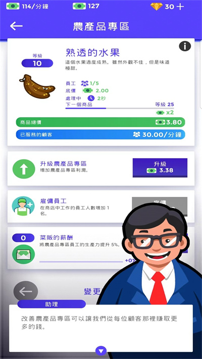 成为最佳超市经理。聘请推销员,让他们为你提升销售量和利润。为不同专区的员工设置薪酬标准。关怀顾客,为他们提供更多商品选择以及健康商品。
