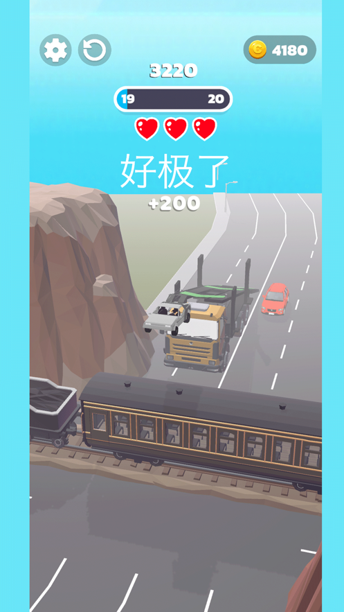 3、快节奏游戏,从几米高的天空飞跃,不一样的超车,需要找到小技巧。