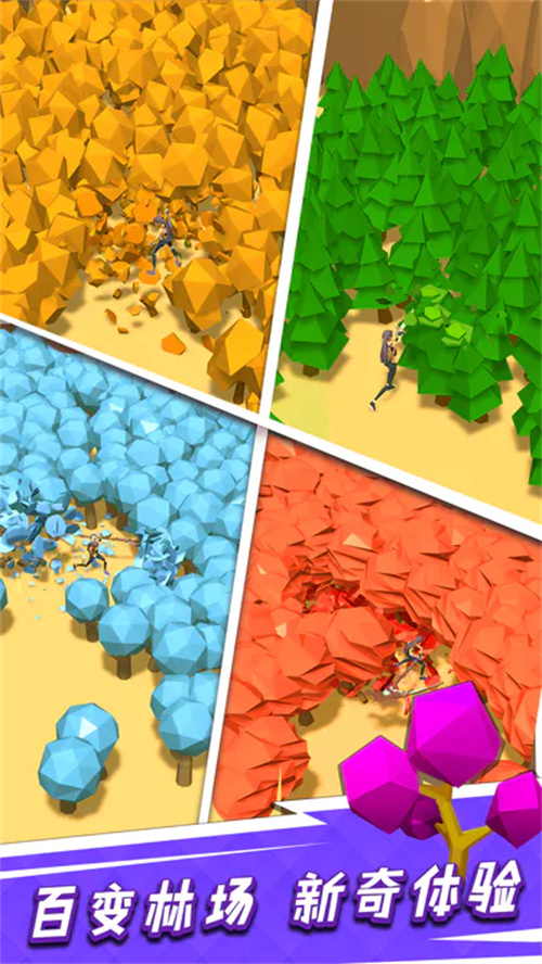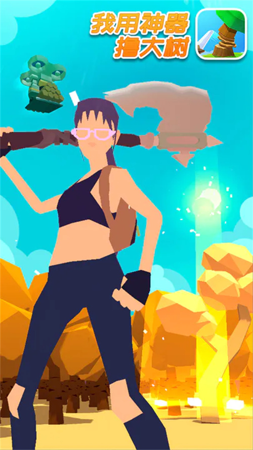 神器撸大树是集割草、放置、经营、休闲于一身的游戏。你将继承伐木场,化身伐木工,挥动祖传神器砍伐大树。在这里你可以享受割草砍树的快感,挥动武器将成片的树林砍成平地。将获得的树木加工成木料,在无人机的帮助下送到工坊生产木制品,出售并赚取金币升级伐木场。最终成为伐木大亨,业界楷模,走上伐木工巅峰!