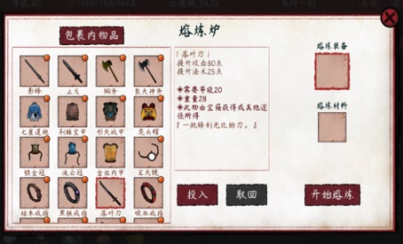 多达百种的物品材料装备,武学书籍丹方全部随机掉落。