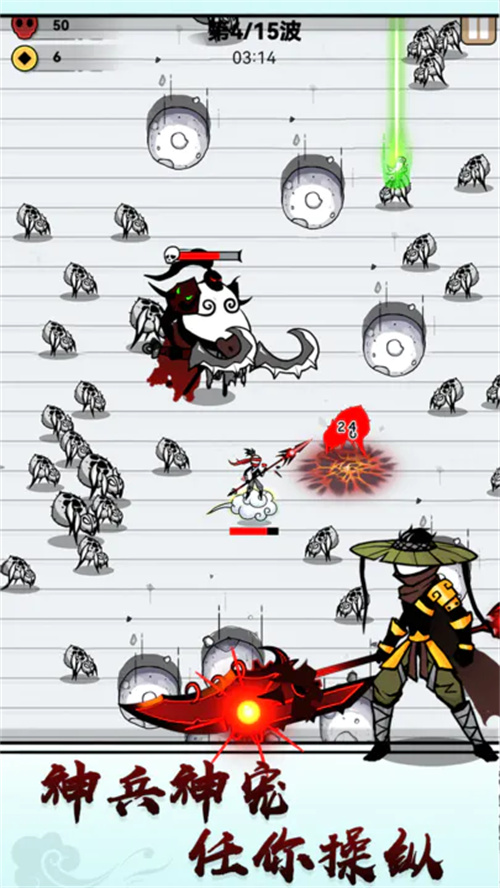 割草爽感:局内敌怪众多且形象能力各异,分拨次大批量涌进,需要策略组合技能提升角色能力,形成站撸割草画面