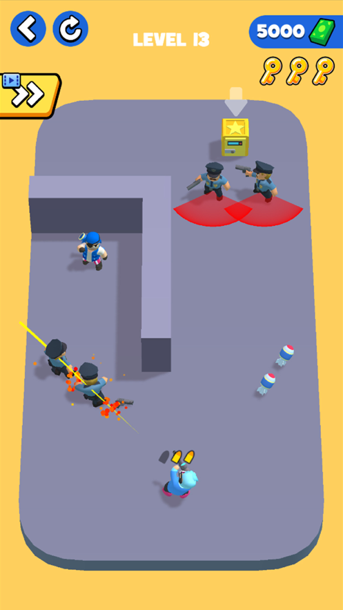 3、不同难度、不同难度的时间和障碍物的数量各不相同,这就给了玩家不同层次的挑战过程;