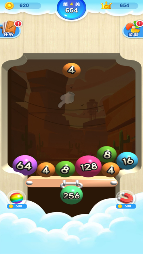 3、超有趣的3d球球2048,按住把球球拖到正确的位置抛下去,遇见相同数字的球就可以合成全新的数字球。你能合成2048吗?快来挑战吧!
