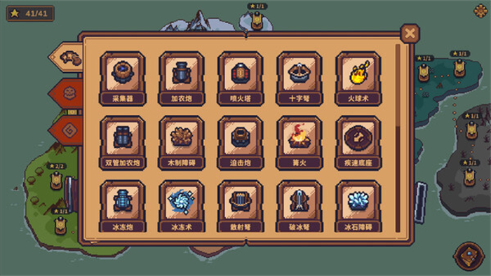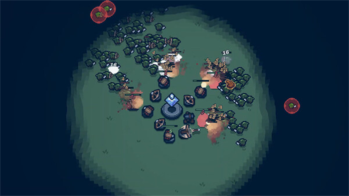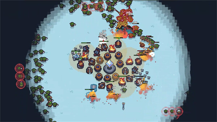 游戏共有5个大地图,每个地图都是不一样的地图环境,并且都有不一样的效果特性。比如冰雪地图,玩家必须建造篝火,否则温暖区外的建筑将进入冰冻状态,攻击和采集速度下降。沙漠地图则会让防御塔相邻升温,达到3级升温后攻击速度会加快,但同时受到的伤害也会增加,风险与收益并存。
