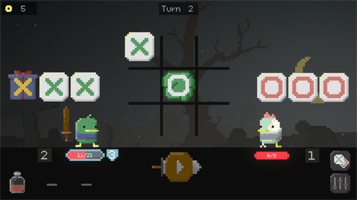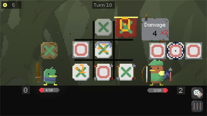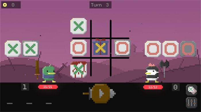 通过在井字棋盘上形成连击对对手造成伤害!小心地将你的图块放置在棋盘上以创建匹配、发动攻击并粉碎家禽敌人——但请务必提前计划,因为棋盘不会在两次攻击之间清除!