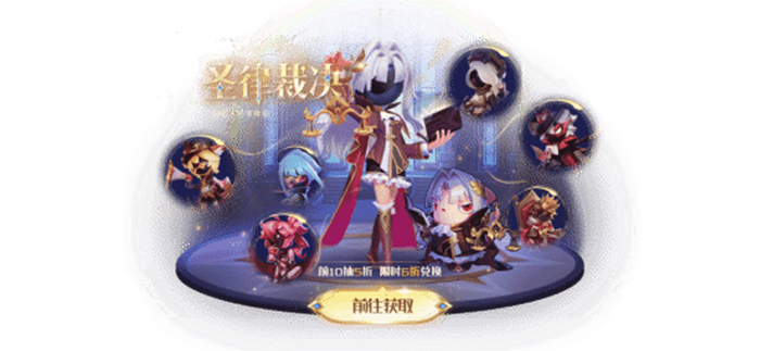 身份时装夺宝【圣律裁决】 同步开启,酷炫时装等待您的抽取。前10抽还能享受5折优惠,限时6折兑换,赶快解锁你的独家身份!