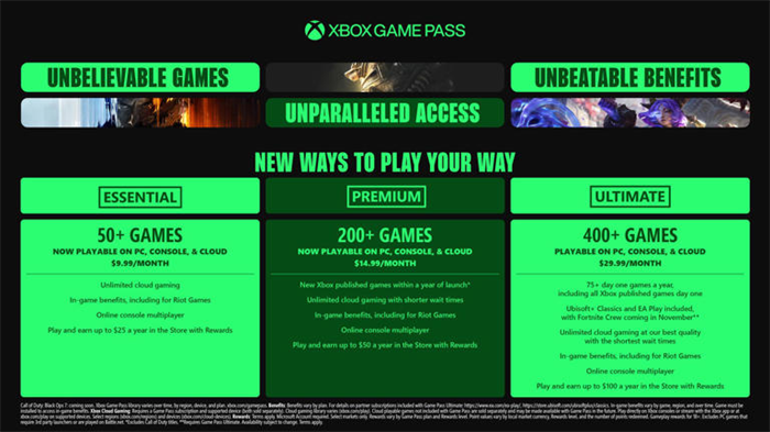 如今 Xbox Game Pass Essential / Premium / Ultimate 三个订阅层级的用户均可享受不限量的云游戏服务,其中 Premium 等级用户还可期待更短的等待时间,而 Ultimate 层级订阅者能特定设备的部分游戏上可享受 1440p QHD 的画面和最短等待。