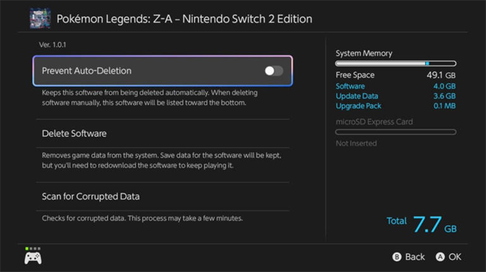 值得注意的是,游戏在预载开启的同时,也已更新至Version 1.0.1版本。Switch2版还需下载一个容量高达3.6GB的首日补丁(游戏本体和首日补丁合计共7.7GB)。据分析,此更新包很可能包含了专为Switch2版准备的所有高清纹理与新增资源。目前尚不清楚实体卡带是否会预先集成该补丁,抑或是所有Switch2玩家均需联网下载。