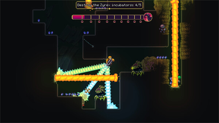 游戏背景设定在一个“墙壁”无尽延伸的世界中。玩家在程序生成的矿洞中展开危险的远征、在地表上抵御成群的敌人,并深入探索隐藏在深处的秘密。