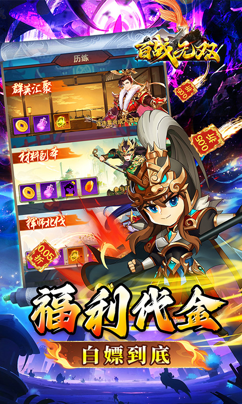 《百战无双》是一款全新三国题材策略卡牌手游,真实还原剧情,争霸天下,攻城掠阵,融入众多历史名城以及经典战役元素,超然万物的名将助您角逐三国之巅。0.05折的价格,每日获取代金券,更有海量福利,丰富活动,等主公您体验。畅享无双豪情~