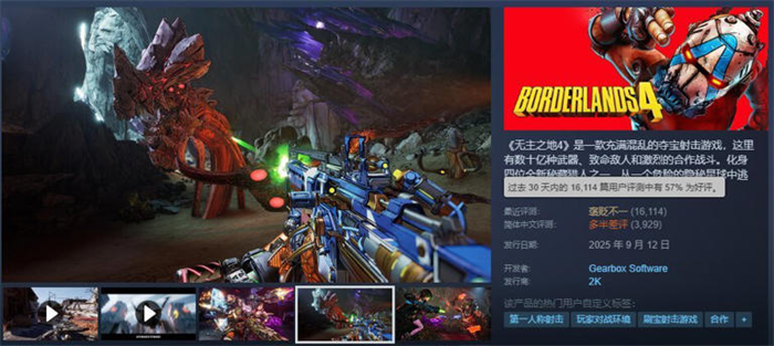 《无主之地4》陷入口碑危机,Steam版玩家数量暴跌85%