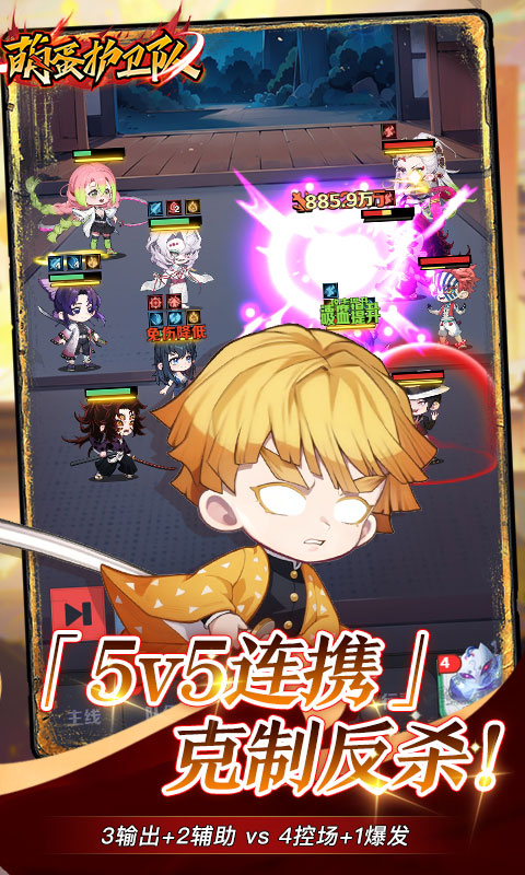 萌蛋护卫队(0.1折5v5)是以人气动漫为背景的沉浸式放置策略手游; 5v5爆燃对决与轻松养成的放置玩法完美结合! Q萌斩鬼之王化身鬼杀队组建专属猎鬼小队1 斩尽世间之恶鬼,书写属于你的斩鬼传奇! 开启你的猎鬼之旅,成为斩尽恶鬼的巅峰剑士,守护人间最后的黎明!